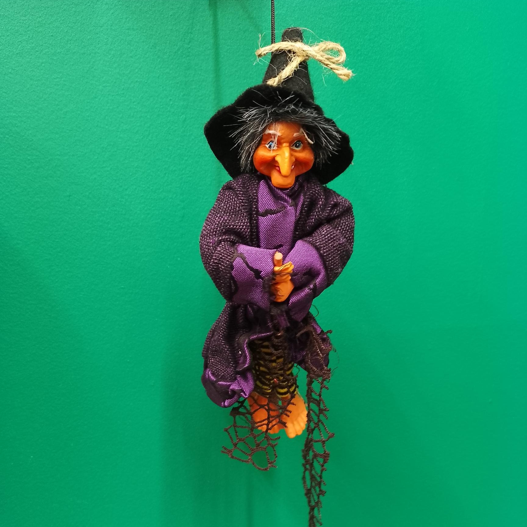 Kitchen Witch Doll Hilda purple: A kitchen witch, sometimes called a cottage witch is a homemade poppet or doll resembling a stereotypical witch or crone displayed in residential kitchens as a good luck charm and to ward off bad spirits.