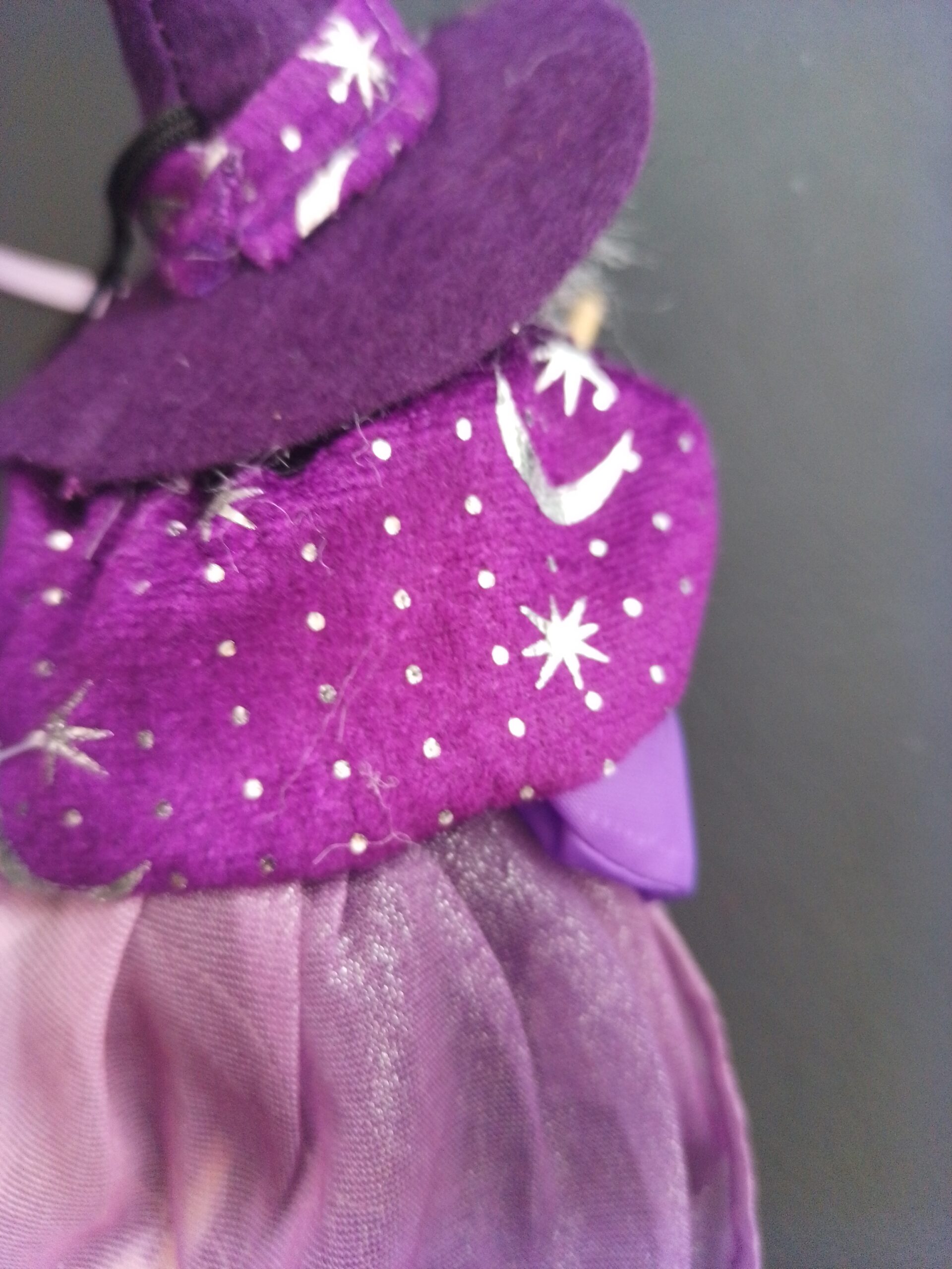 Handmade hanging Kitchen Witch with broom and hat.