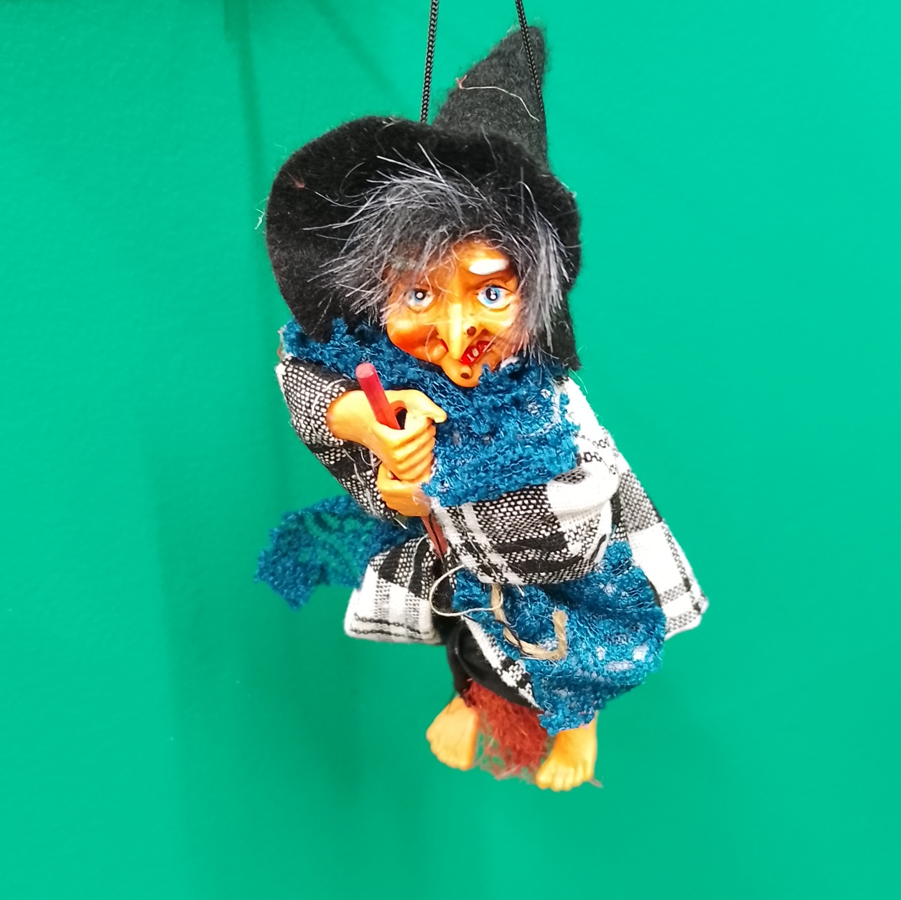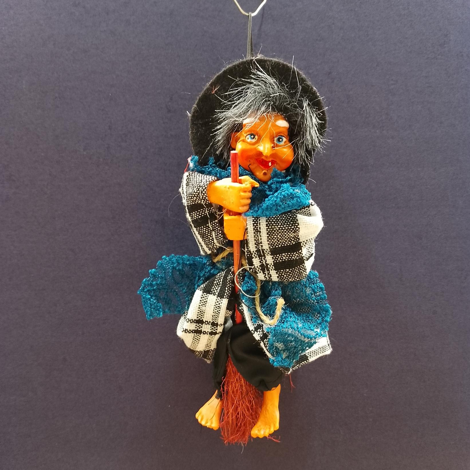 Handmade hanging Kitchen Witch with broom and hat