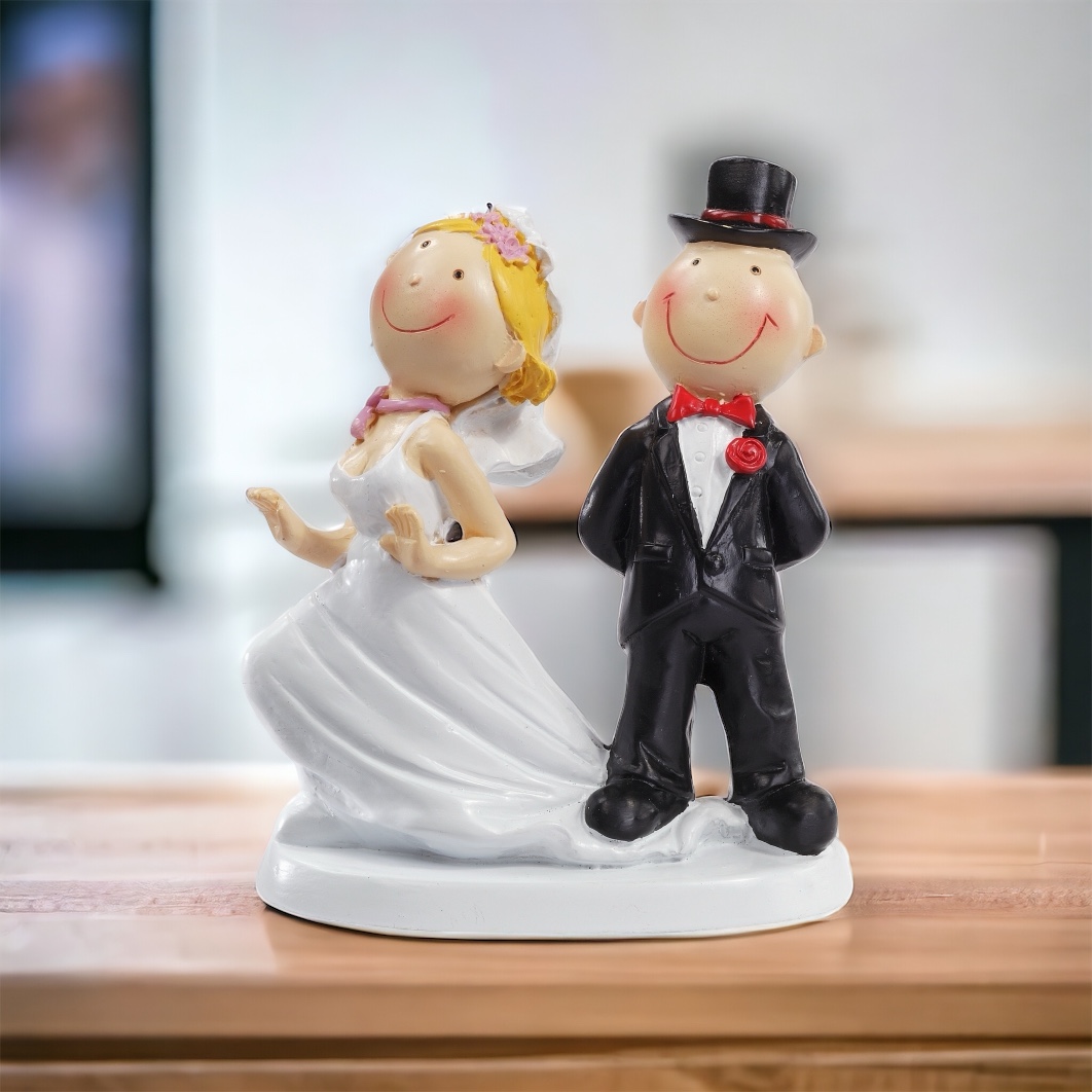A very cute piece - The Wedding Cake Topper Runaway Bride. The wedding cake, a beloved symbol of love and celebration, holds a special place in the hearts of many. It's a centerpiece that serves as a reflection of the couple's style and personality. There is always ample room for creativity! At MarketPlace24, we understand that every couple is unique, and their wedding cake should be too. That's why we offer an extensive selection of unconventional cake toppers that break away from the ordinary. Whether you envision a romantic motif, a whimsical design, or a touch of humor, our collection has something to suit every taste. Our curated assortment of cake toppers is designed to add that extra touch of magic to your special day. These toppers aren't just decorations; they're conversation starters, cherished mementos, and, most importantly, expressions of your individuality as a couple to elevate your cake and delight your guests while creating unforgettable moments on your journey to "I do."